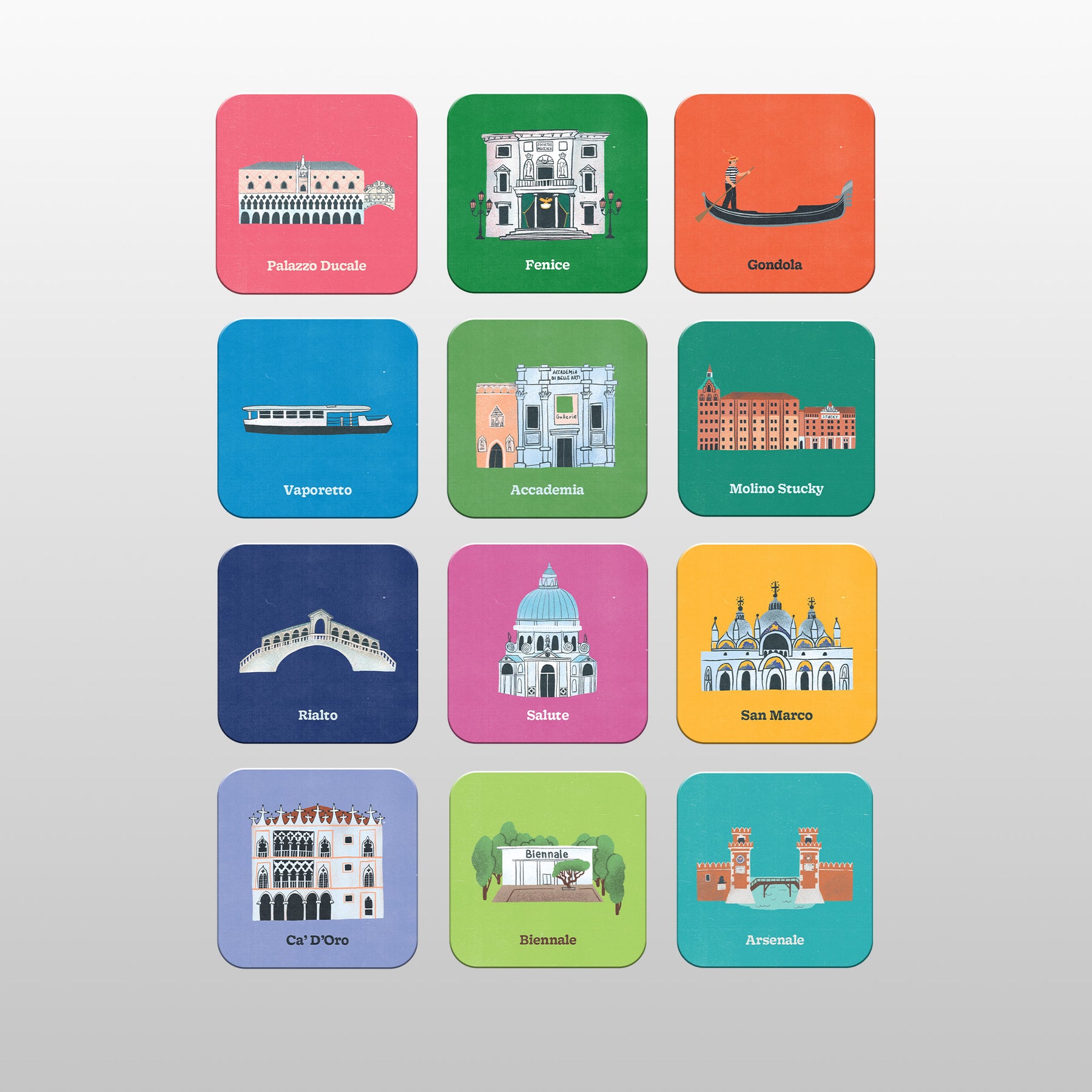 Featuring 24 tiles (12 matching pairs), it’s a fun and educational way to discover iconic Venetian landmarks and symbols.